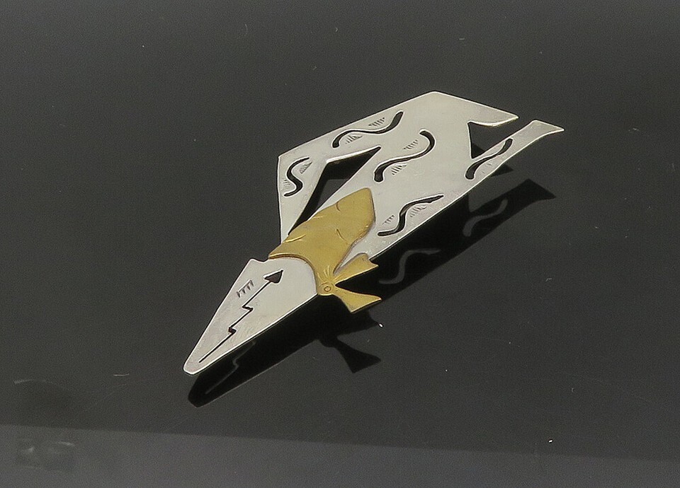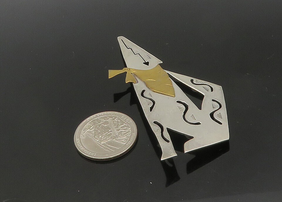 SOUTHWESTERN 925 Sterling Silver Vintage Two Tone Howling Wolf Brooch Pin BP8309