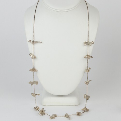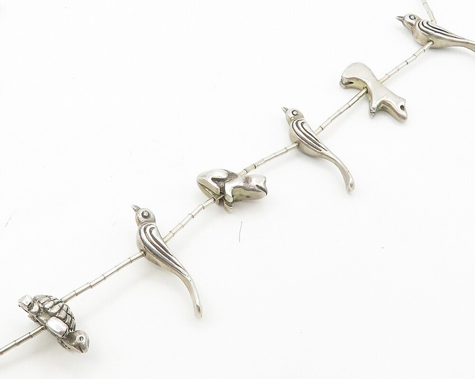 SOUTHWESTERN 925 Silver Vintage Assorted Animal Charms Chain Necklace NE2975