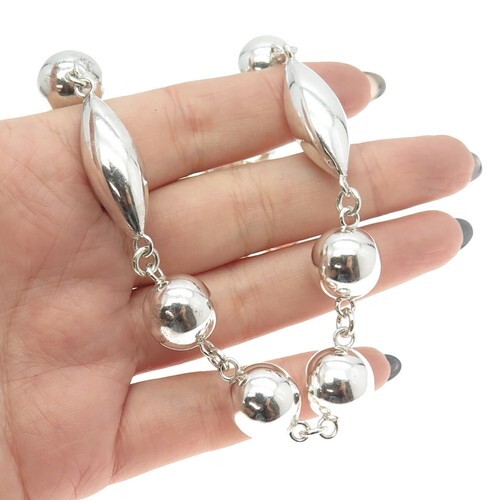 MEXICO 925 Silver Vintage Heavy Black Hematite Beaded Chain Necklace NE2948