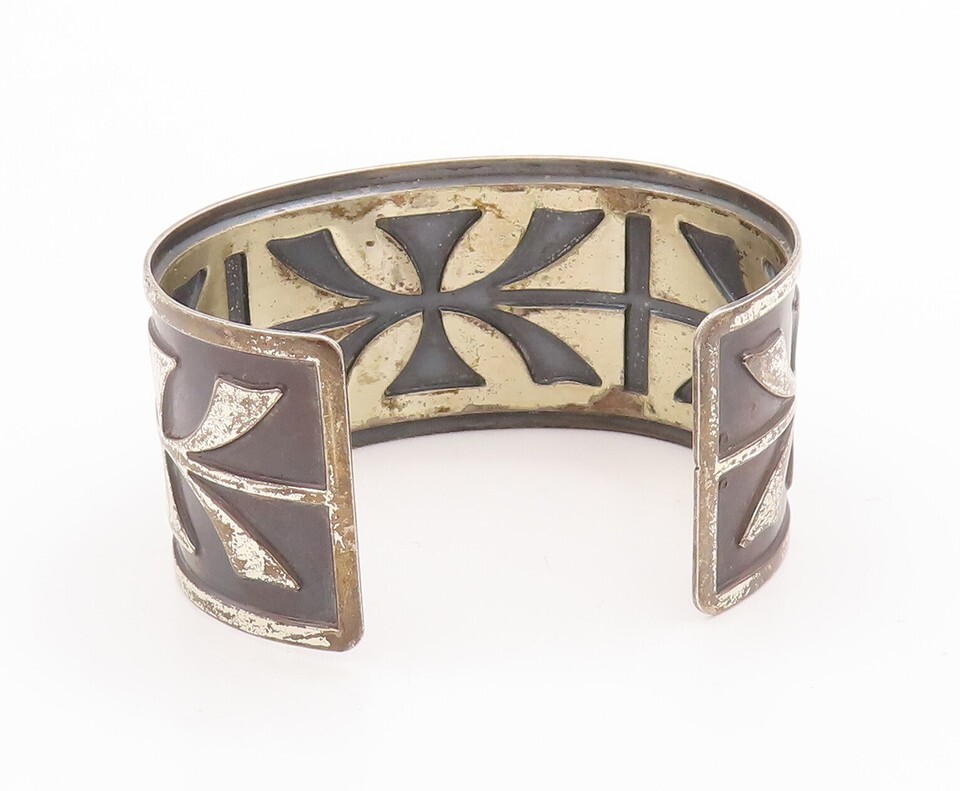 925 Sterling Silver Vintage Bracelet Antique European Floral Etched Cuff BT10554