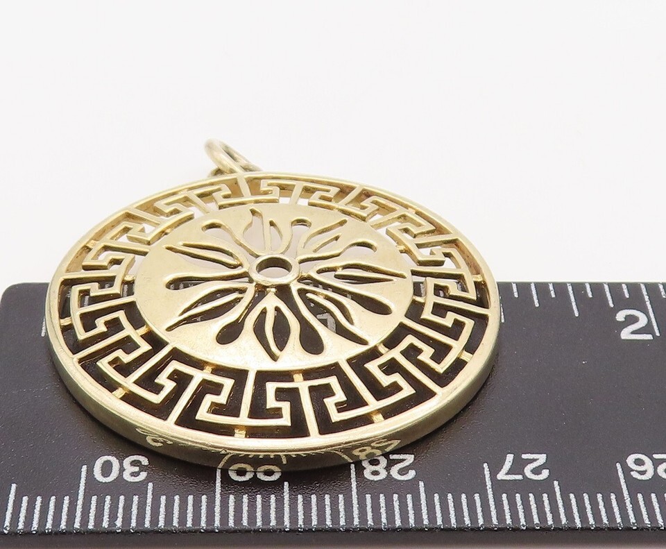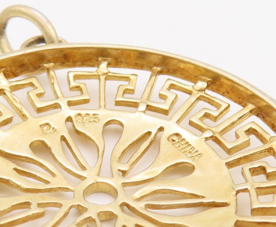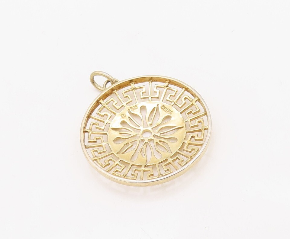 925 Sterling Silver Vintage Pendant Gold Plated Cutout Maze Key Sun PT23514