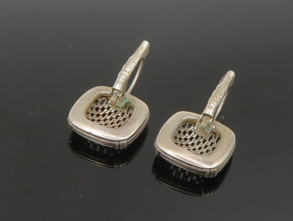 ESPO 925 Sterling Silver Vintage Square Shaped Wire Mesh Drop Earrings EG11607