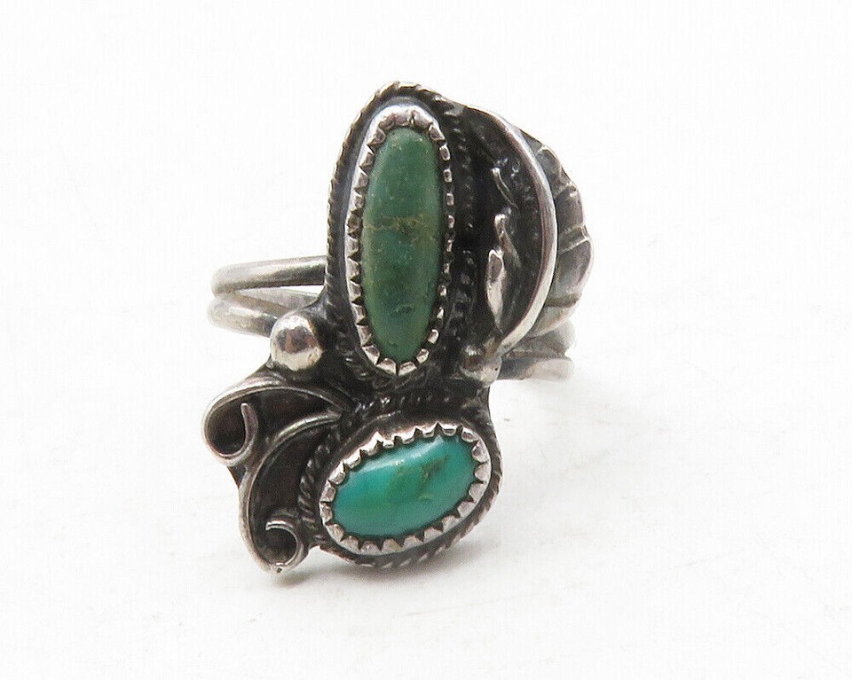 NAVAJO 925 Sterling Silver Vintage Turquoise Floral Leaf Band Ring Sz 5 RG12424
