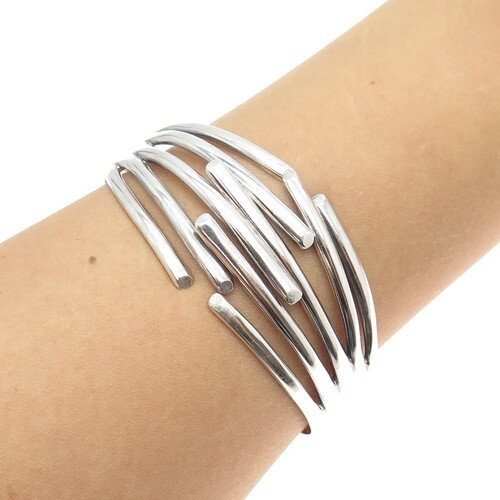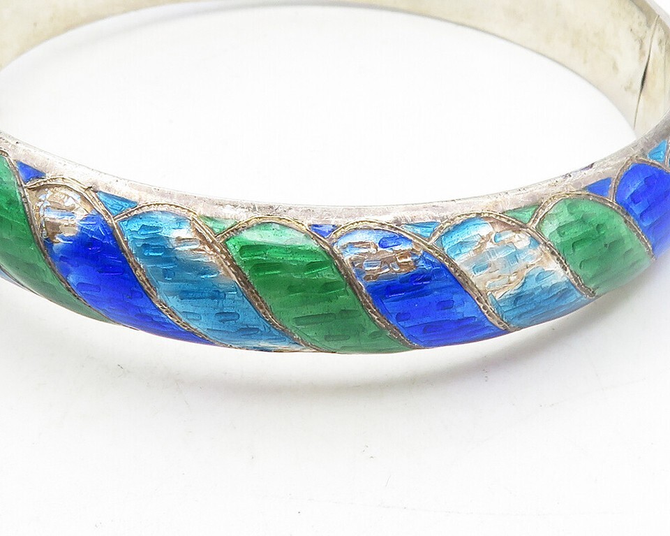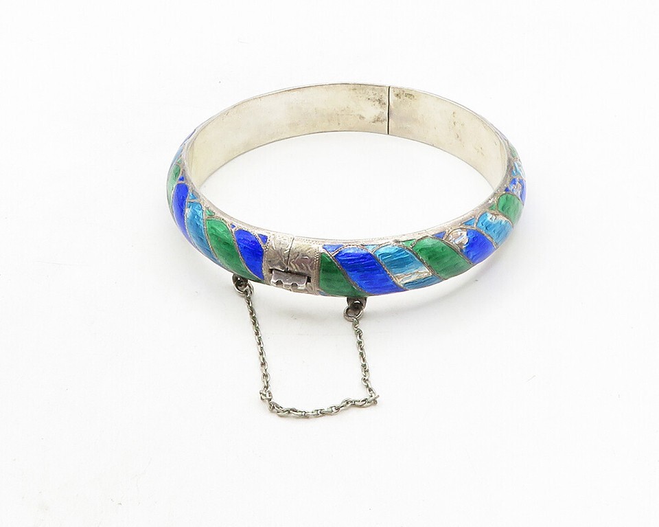 SIAM 925 Sterling Silver Vintage Enamel Coated Pattern Bangle Bracelet BT4362
