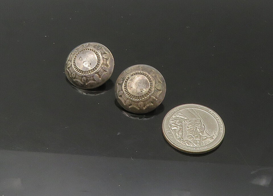 SOUTHWESTERN 925 Sterling Silver Vintage Etched Dome Non Pierce Earrings EG11014