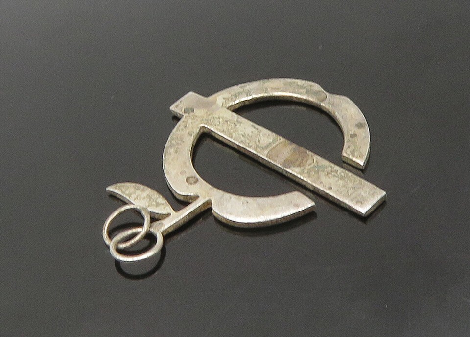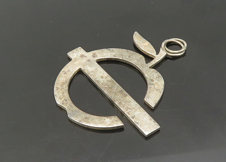 925 Sterling Silver Vintage Apple Fruit Motif Dark Tone Pendant PT17070