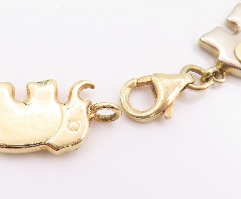 Authenticity Guarantee 14K GOLD Vintage Bracelet Tri Colored Lucky Baby Elep...