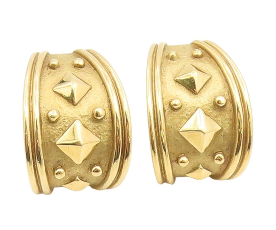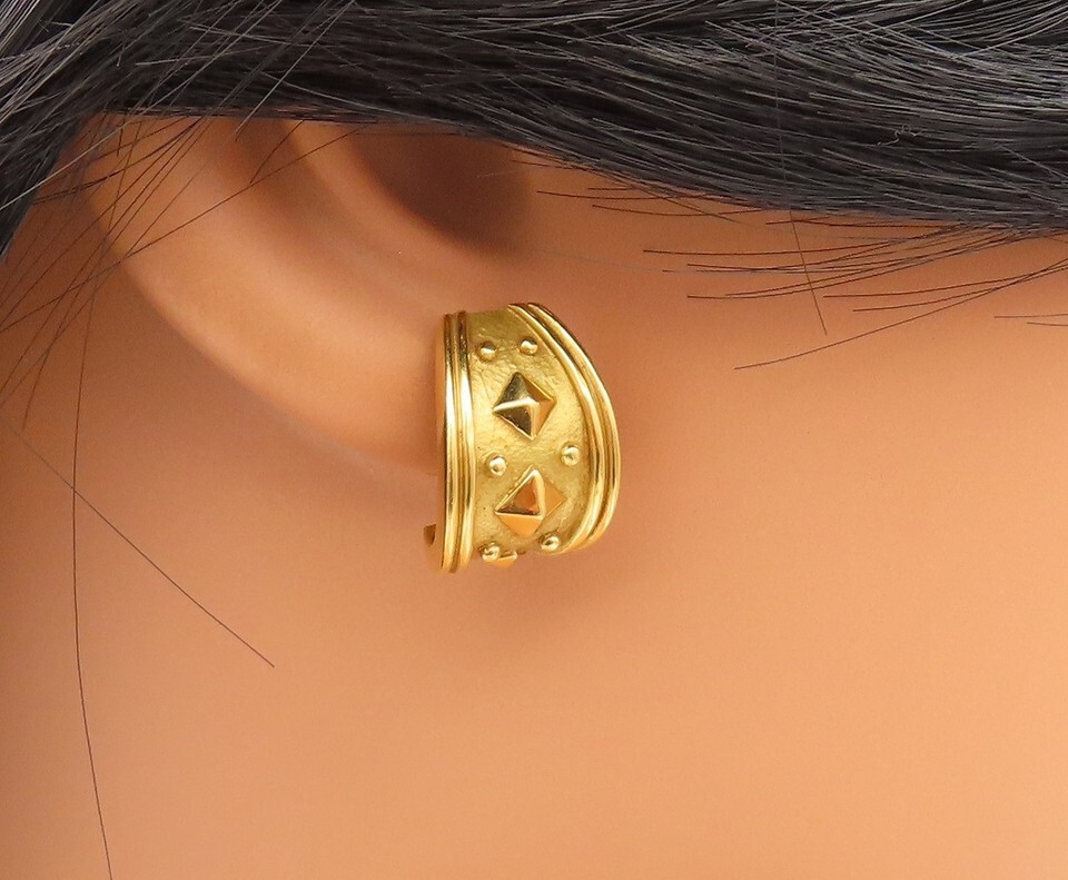 Authenticity Guarantee 18K GOLD Vintage Earrings Chunky Geometric Pyramid & ...