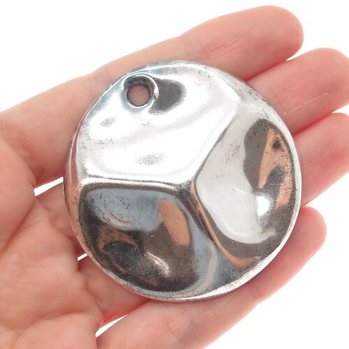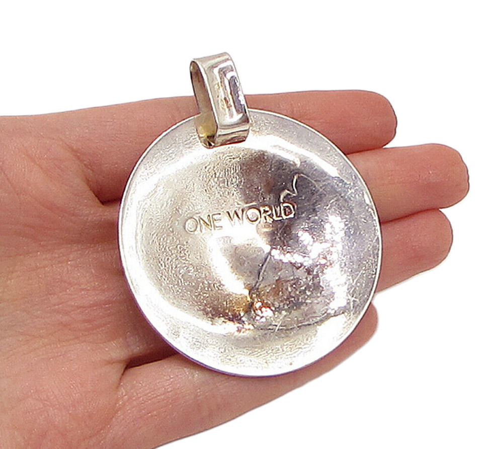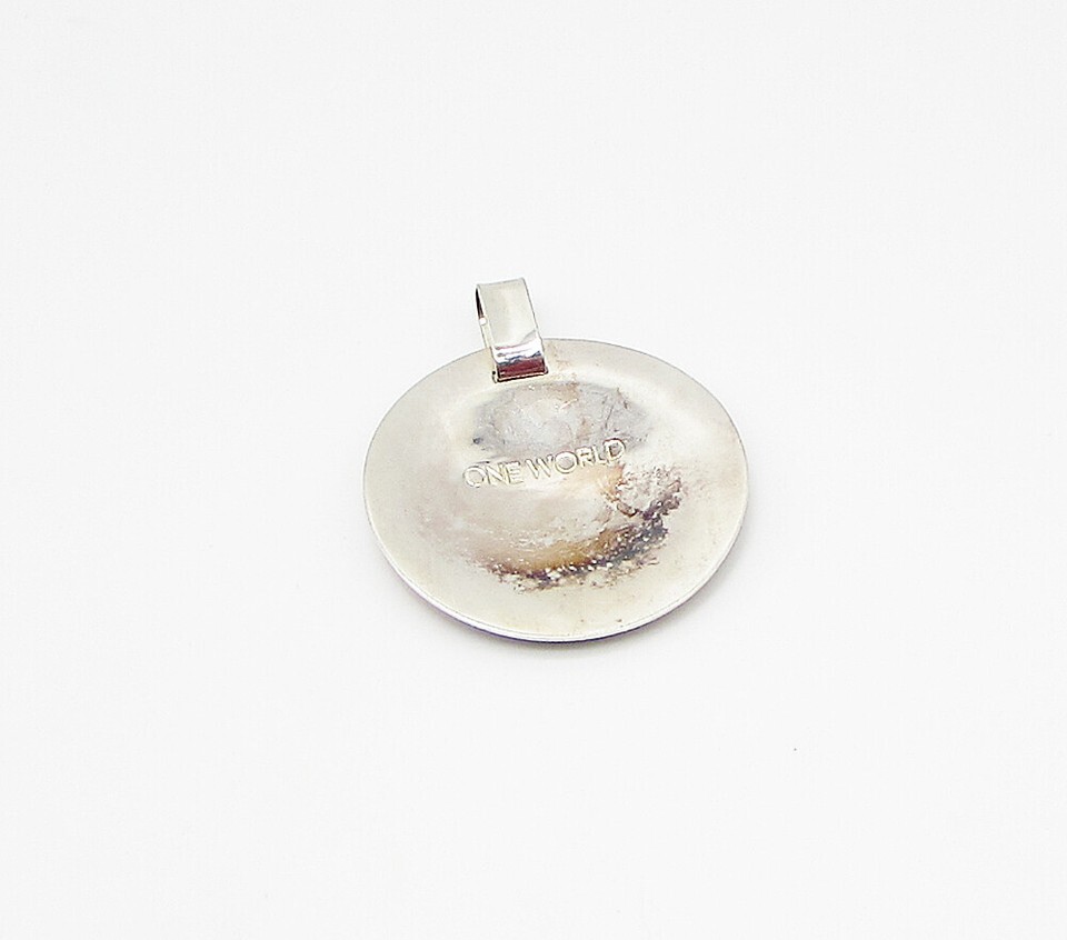 925 Sterling Silver Vintage One World Concave Plate Drop Pendant PT2336