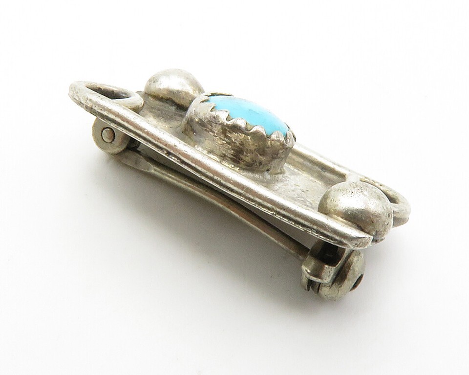 NAVAJO 925 Silver Vintage Cabochon Turquoise Swirl Detail Brooch Pin BP5522