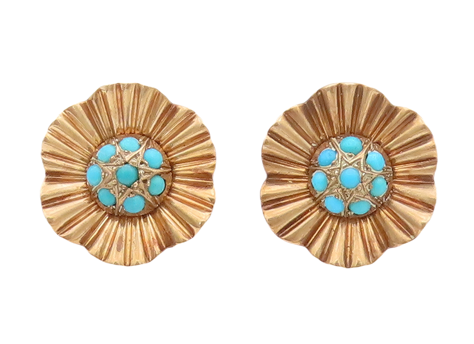 Authenticity Guarantee 10K GOLD Vintage Earrings Victorian Fan Shape Carved ...