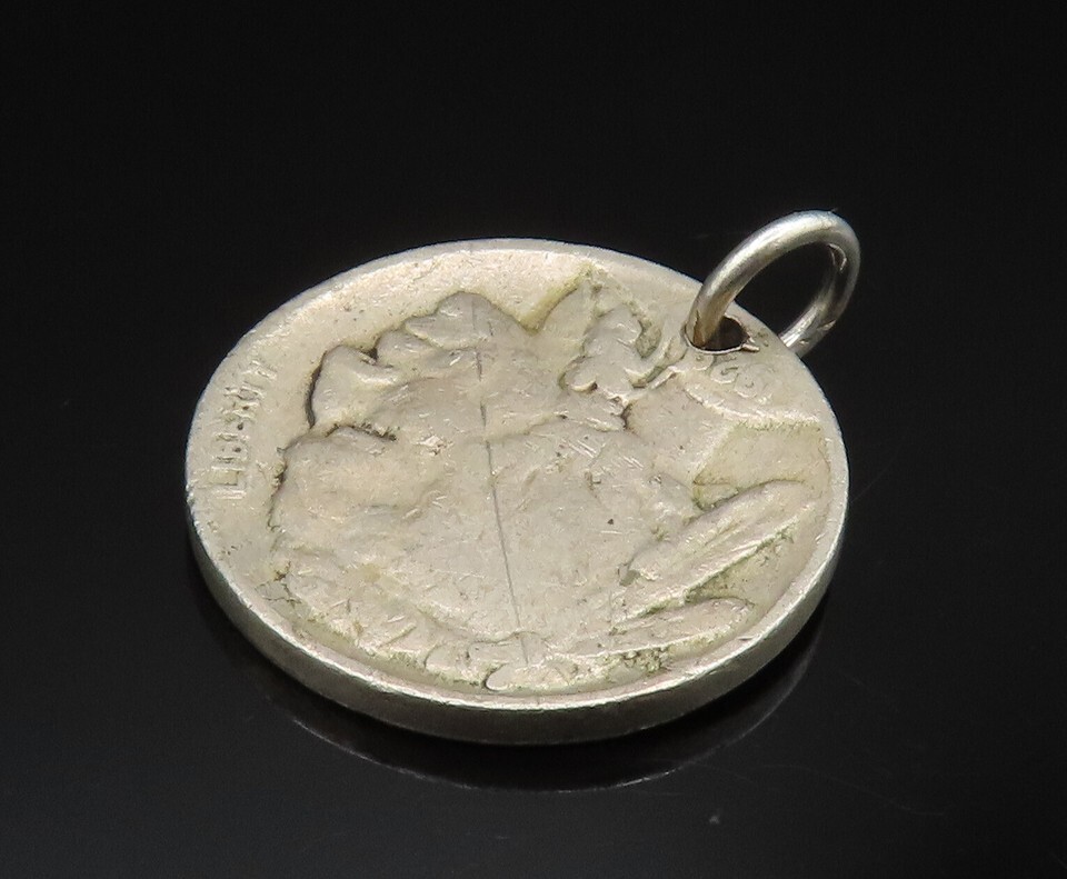 925 Silver Vintage Indian Head Five Cents Buffalo Coin Pendant PT20539