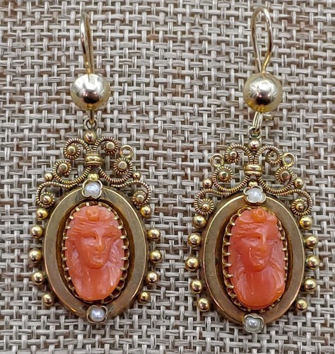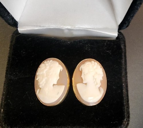 Authenticity Guarantee VAN DELL 14K GOLD Vintage Round Twist Angel Cameo St...