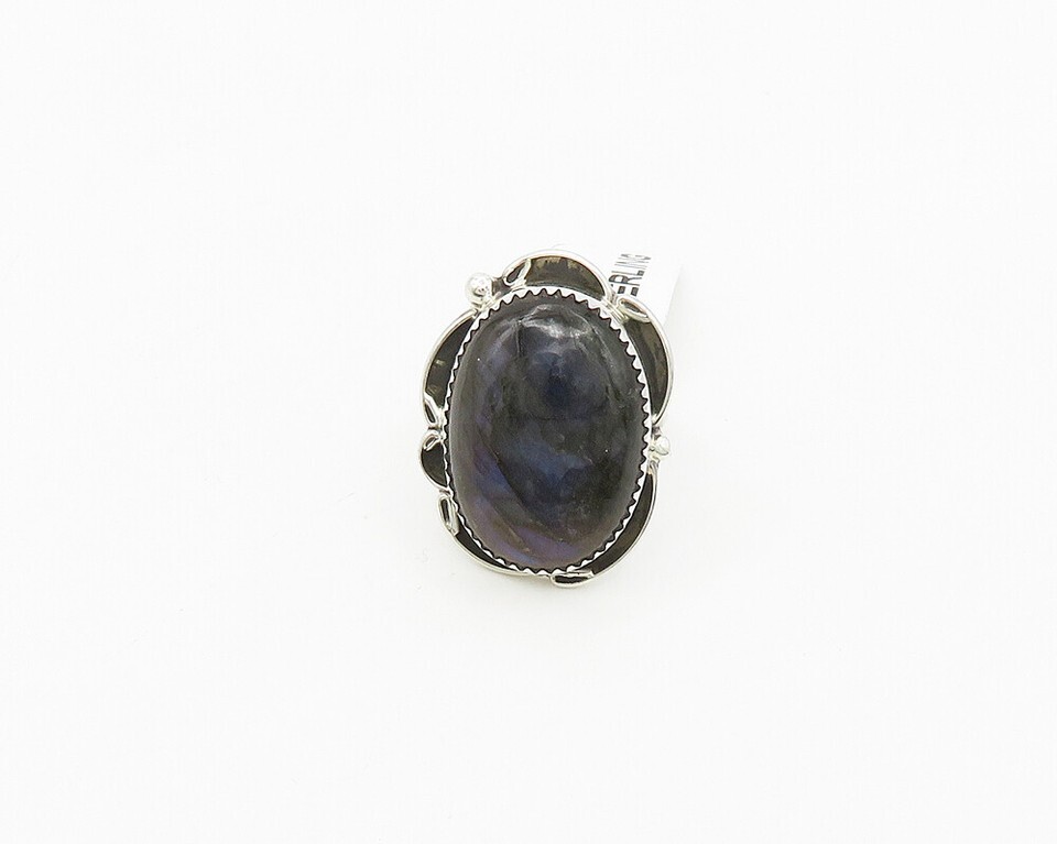 BERNADINE BEGAY TSOSIE NAVAJO 925 Silver Labradorite Ring Sz 8.5 RG17853