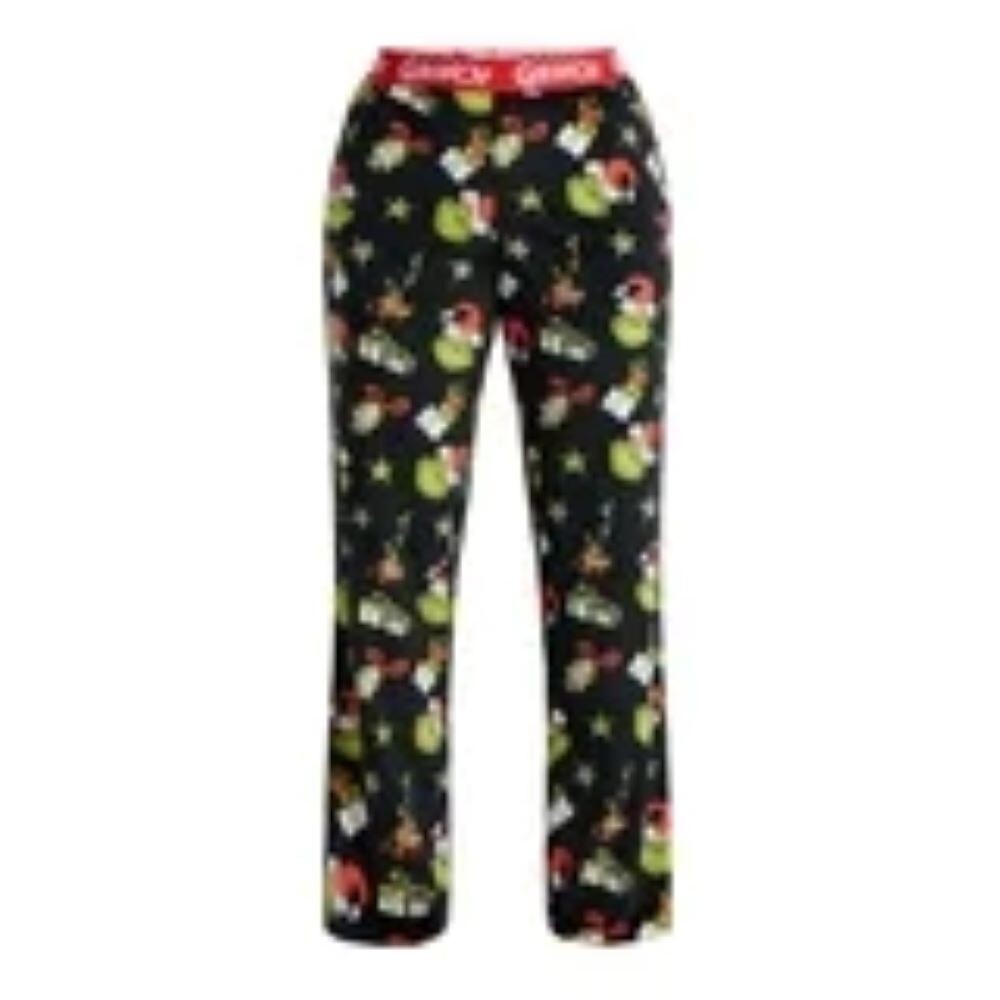 Dr. Seuss Women's The Grinch Print Velour Sleep Pants, Black Size 2X(18W-20W)
