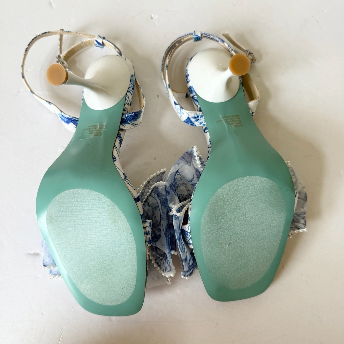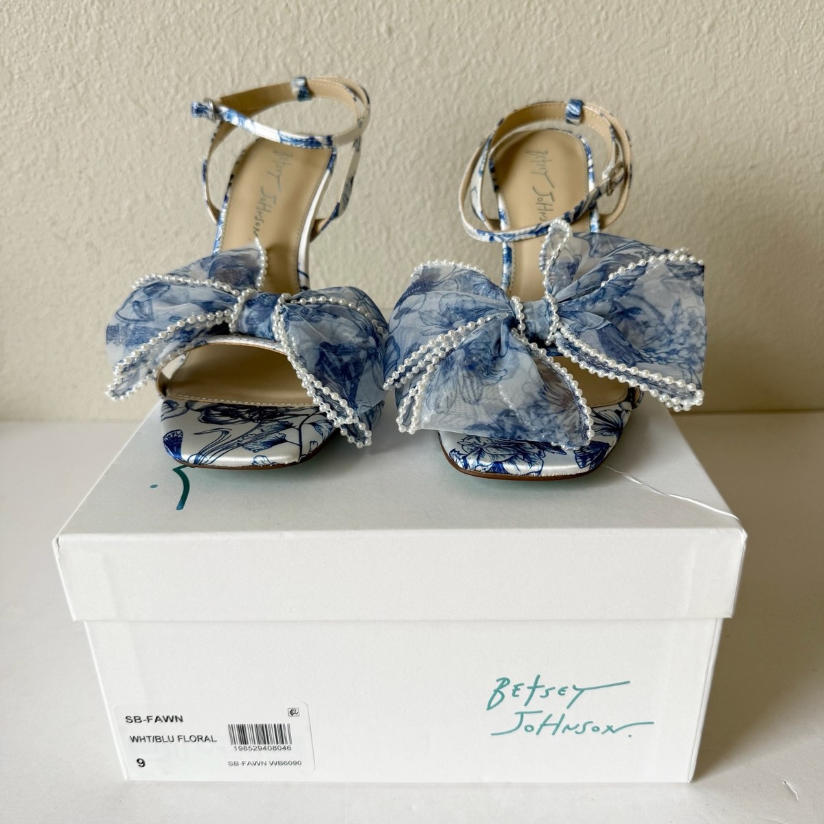 NEW Betsey Johnson Fawn Heels Bow Blue Floral Sandals Wedding Pumps Womens 9