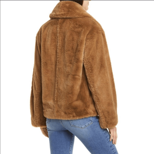 NWT Vince Faux Fur Teddy Bear Soft Coat Walnut Brown L