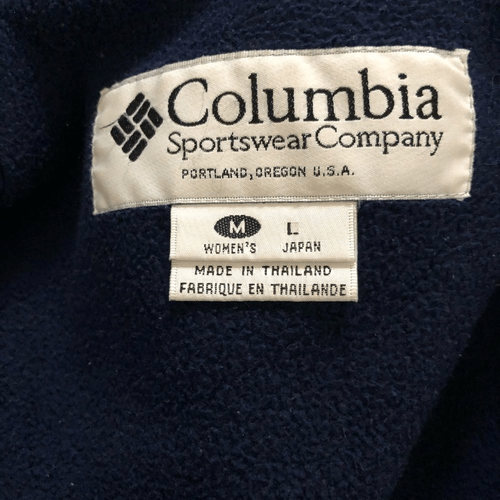 Women?s vintage Columbia jacket with bright purple nylon exterior and navy blue fleece lining. Adjustable cinch waist and zipper pockets including one zipper interior pocket. True to size and featured on my size medium dress form. Laying flat measures approximately 28 inches shoulder to hem, 21 inches from armpit to armpit