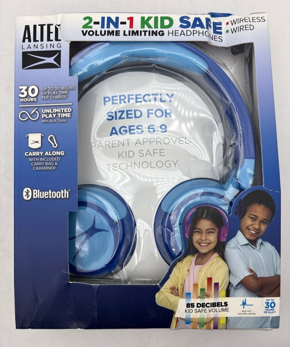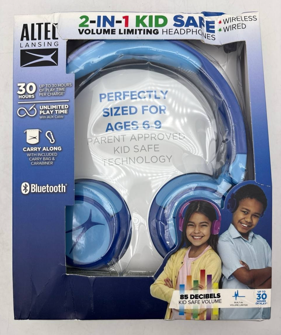 Altec Lansing Kid Safe 2-in-1 Bluetooth Wireless Headphones Volume Limited Blue
