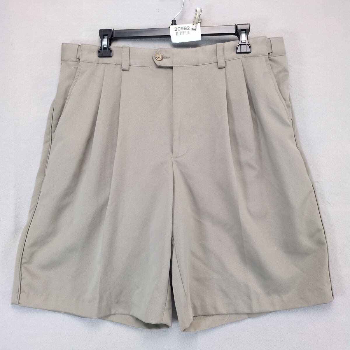 Features: Chino Style, 9 in Inseam, 36 in Measured Waist, Pleated, Mid Rise, Regular Fit, Easy Care, Pockets, Stretch, Belt Loops, Moisture Wicking, Adjustable Waist, Lightweight, Zip Closure, Slash Pocket, Solid Pattern, Embroidered, Leg Crease, Logo, Machine Washable