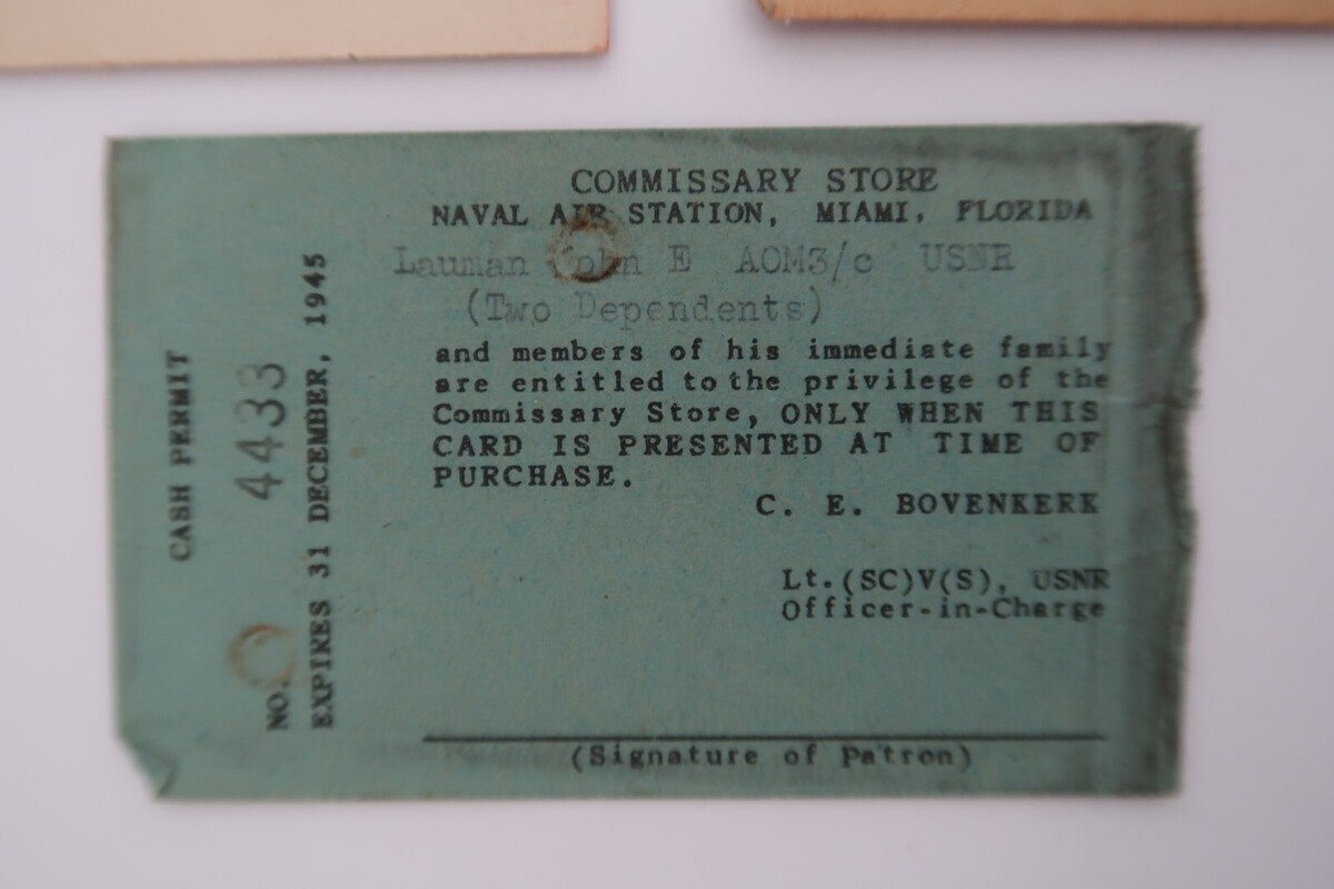 Vtg WWII US Navy Graduation & Guest Pass Norman OK Commissary Store Miami FL