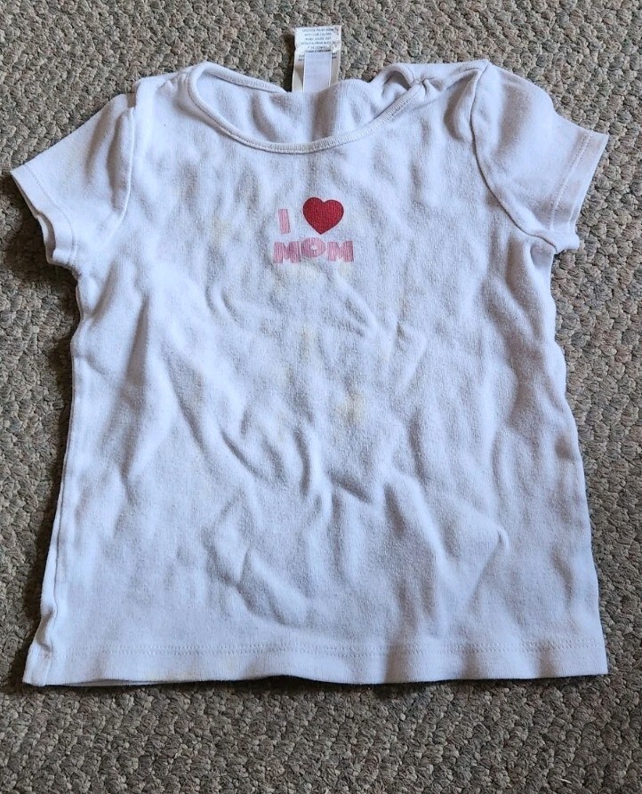 Used shirt. Has some light stains. Old Navy Size 4. I heart Mom.