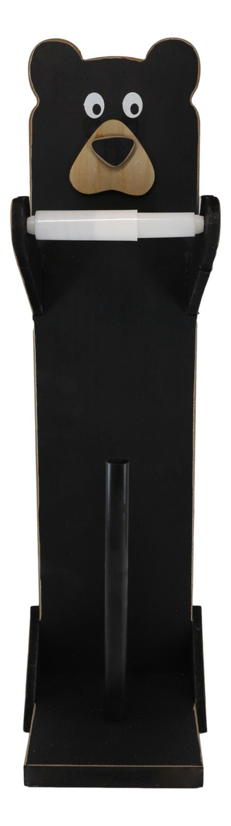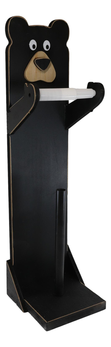 Whimsical Kids Rustic Black Bear Cub Toilet Paper Holder Floor Stand W/ Storage