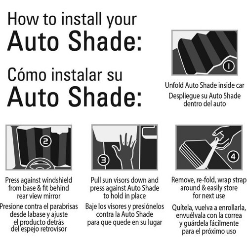 Simple instructions ~ open and press shade against windshield ~ pull down visor to hold shade in place