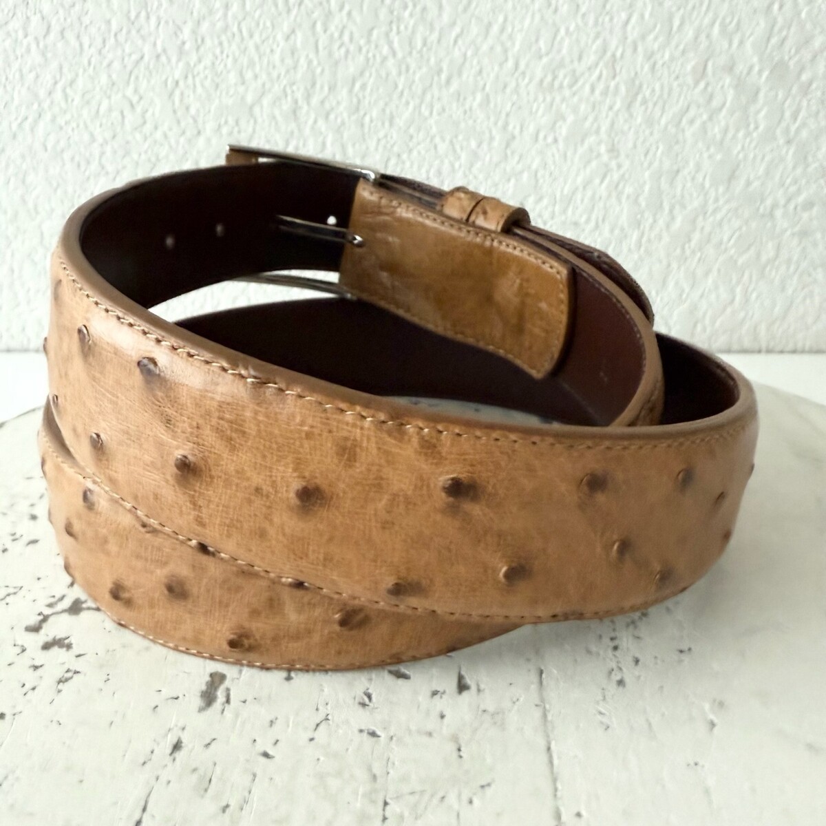 Rod Patrick handcrafted belt made from genuine ostrich leather in the Mad Dog Saddle finish. This leather is known for its rich texture, soft hand feel, and natural depth that develops character over time.