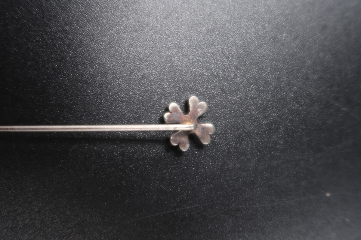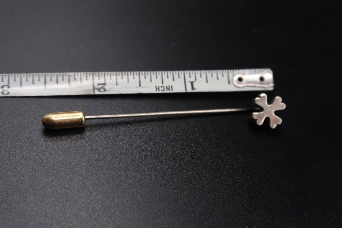 Vintage Silver Tone 4 Leaf Clover Flower Stick Pin 2.5"