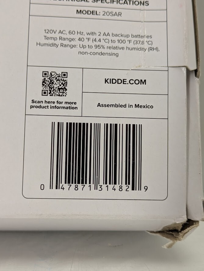 Kidde Detect Inter Connected Hardwired w/Battery Back-up Smoke Alarm Model 20SAR