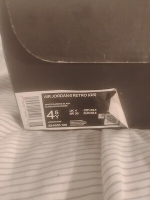 Air Jordan 6 Retro (GS) - 384665 106 - White / Carmine - Black - 4.5Y / Womens 6