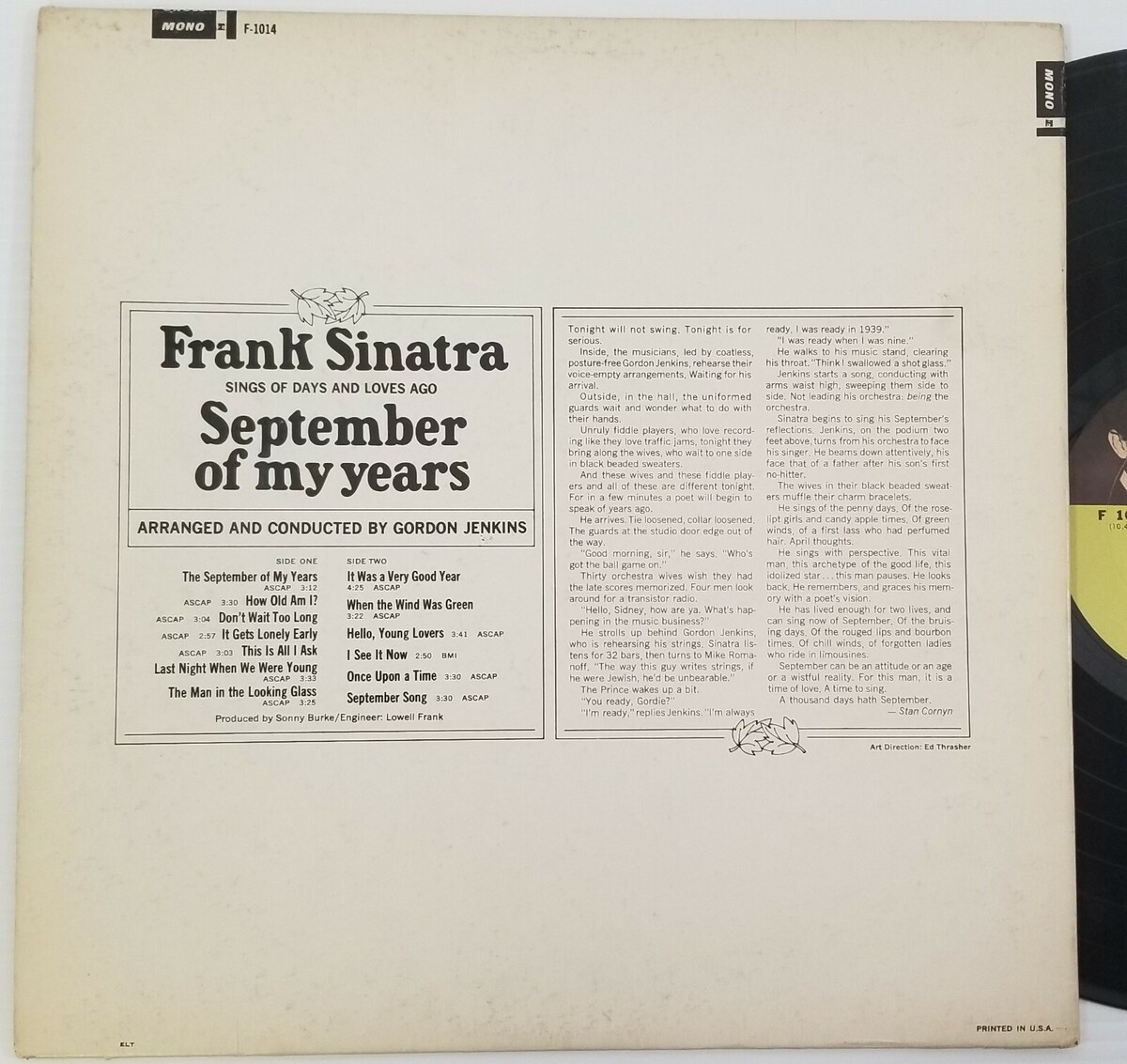 MS) Frank Sinatra - September of My Years - Vinyl Record - Warner Bros. Records
