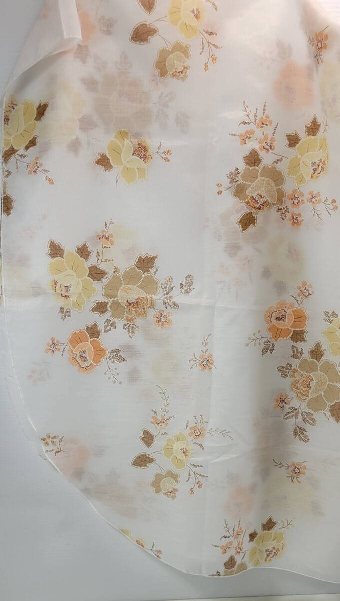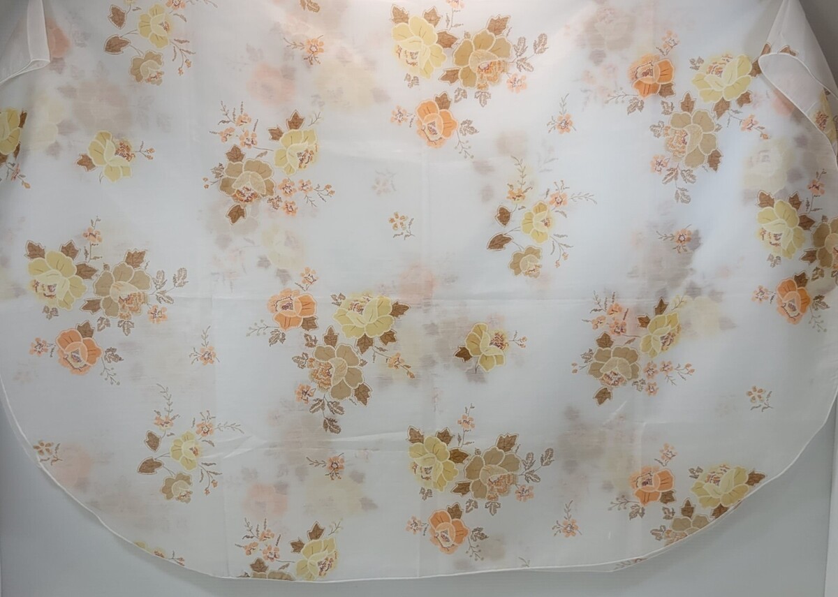 MM) Vintage Transparent White Floral Oval Tablecloth 70.5" x 53"