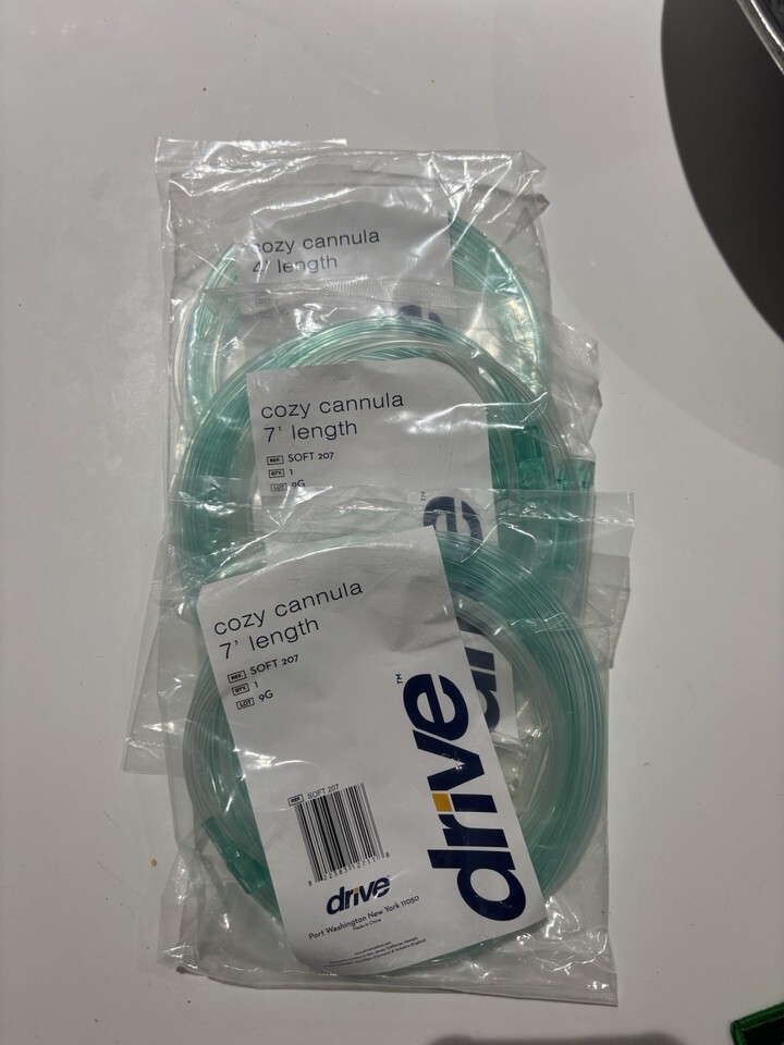 Drive Cozy Cannula Adult Nasal Oxygen Tubing (2) 7 ft (1) 4 ft Soft Green Tubing.