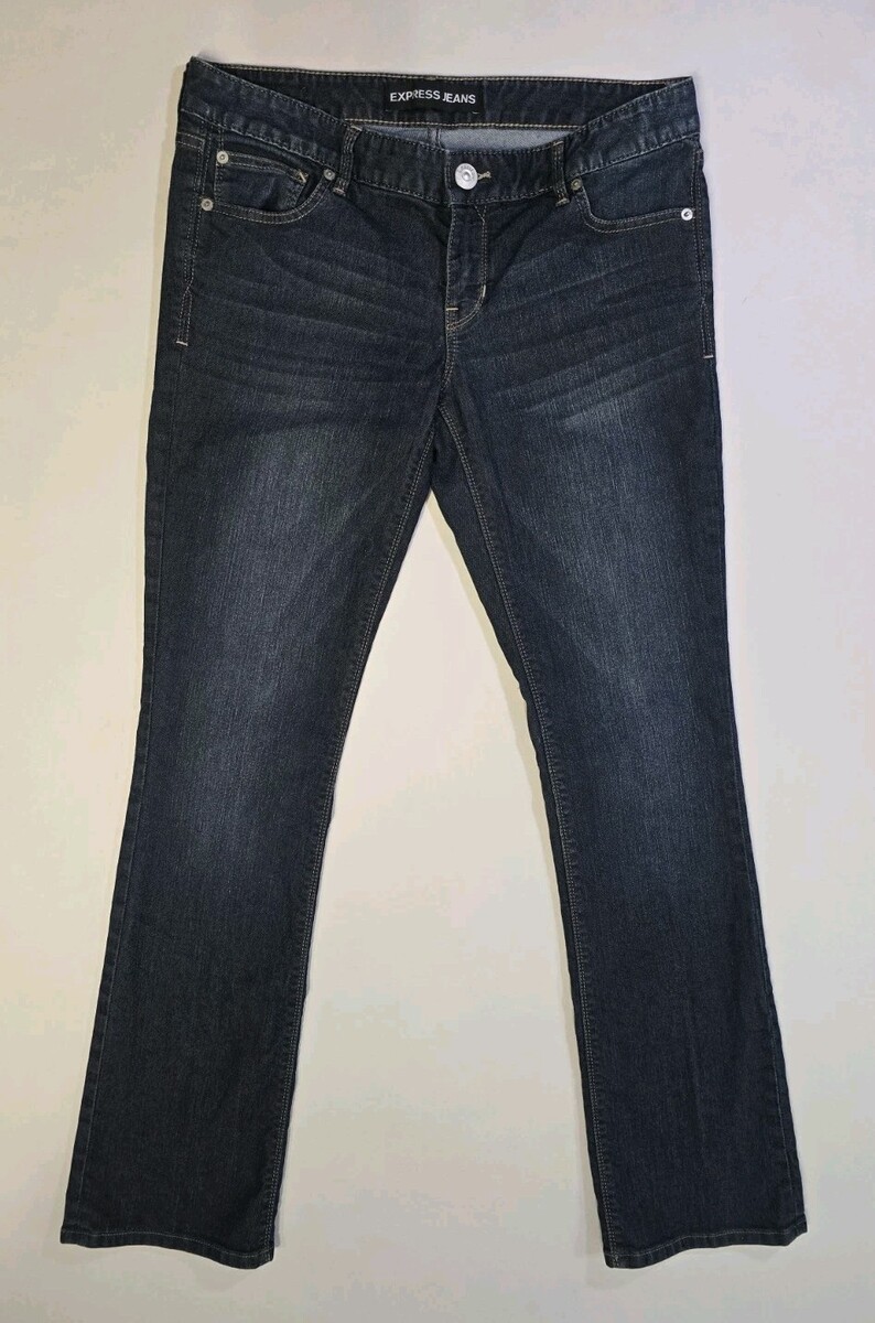 Express Jeans Women's Zelda Barely Boot Ultra Low Rise Stretch Blue Jeans 8R