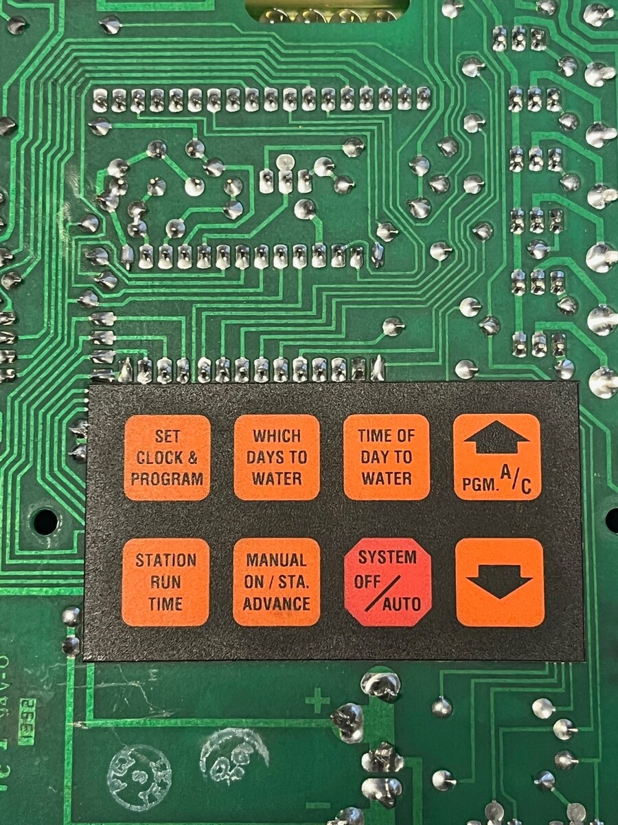 Model: Sprinkler timer control PCB (membrane keypad backside)