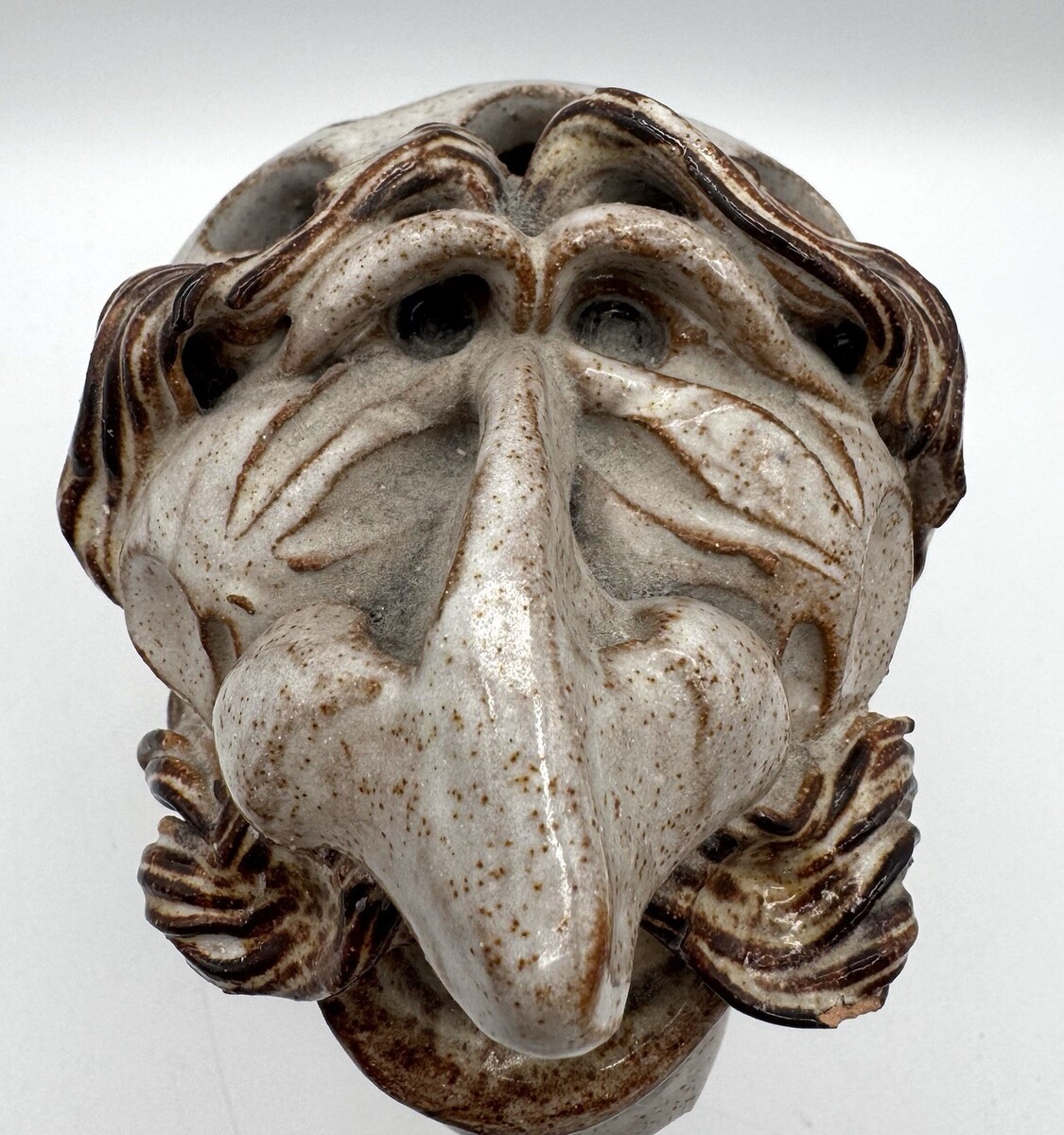 Vintage John Coiner Pottery Funny Face Toothbrush Holder Brush Pen 5.5" Ugly Man
