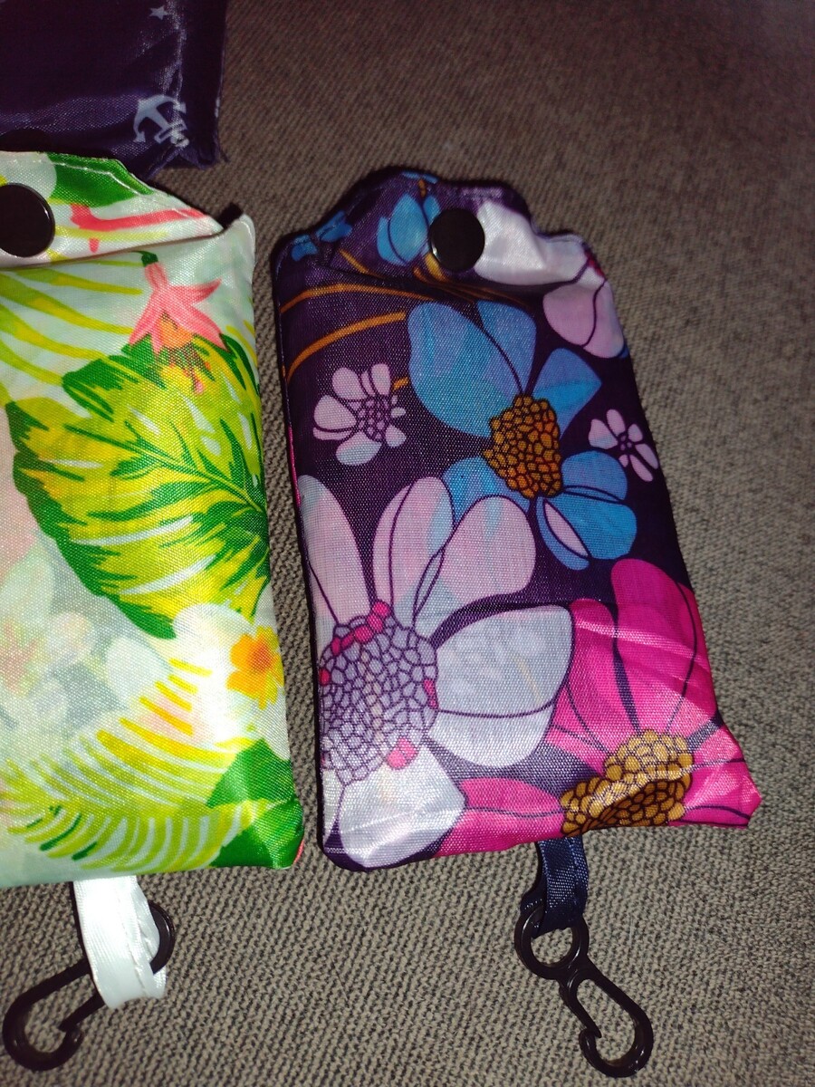 Eco-Friendly Large Nylon Reusable Shopping Bags Floral (Set of 3)