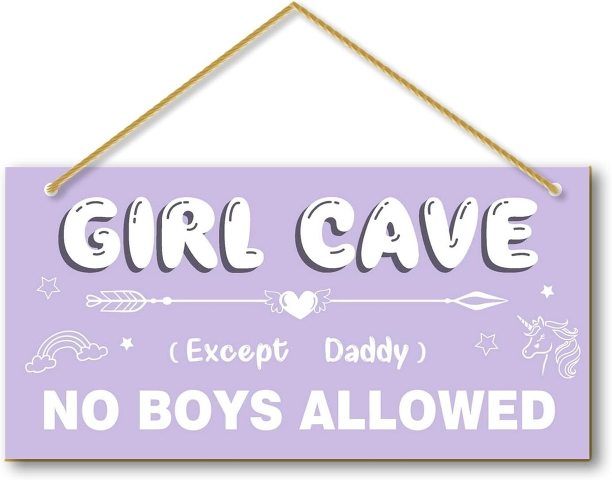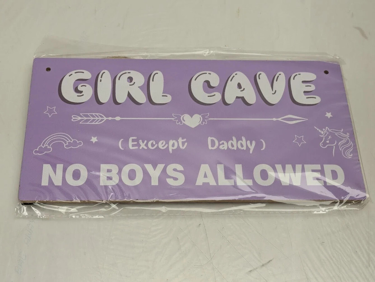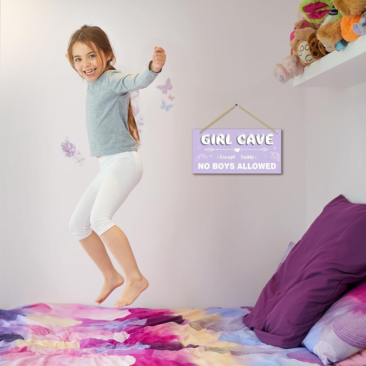 Girls Bedroom Wall Decoration Kids Nursery Room Wooden Cave Sign 12" x 6" Purple