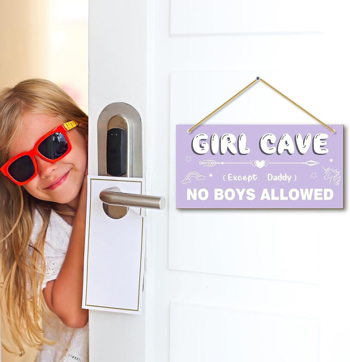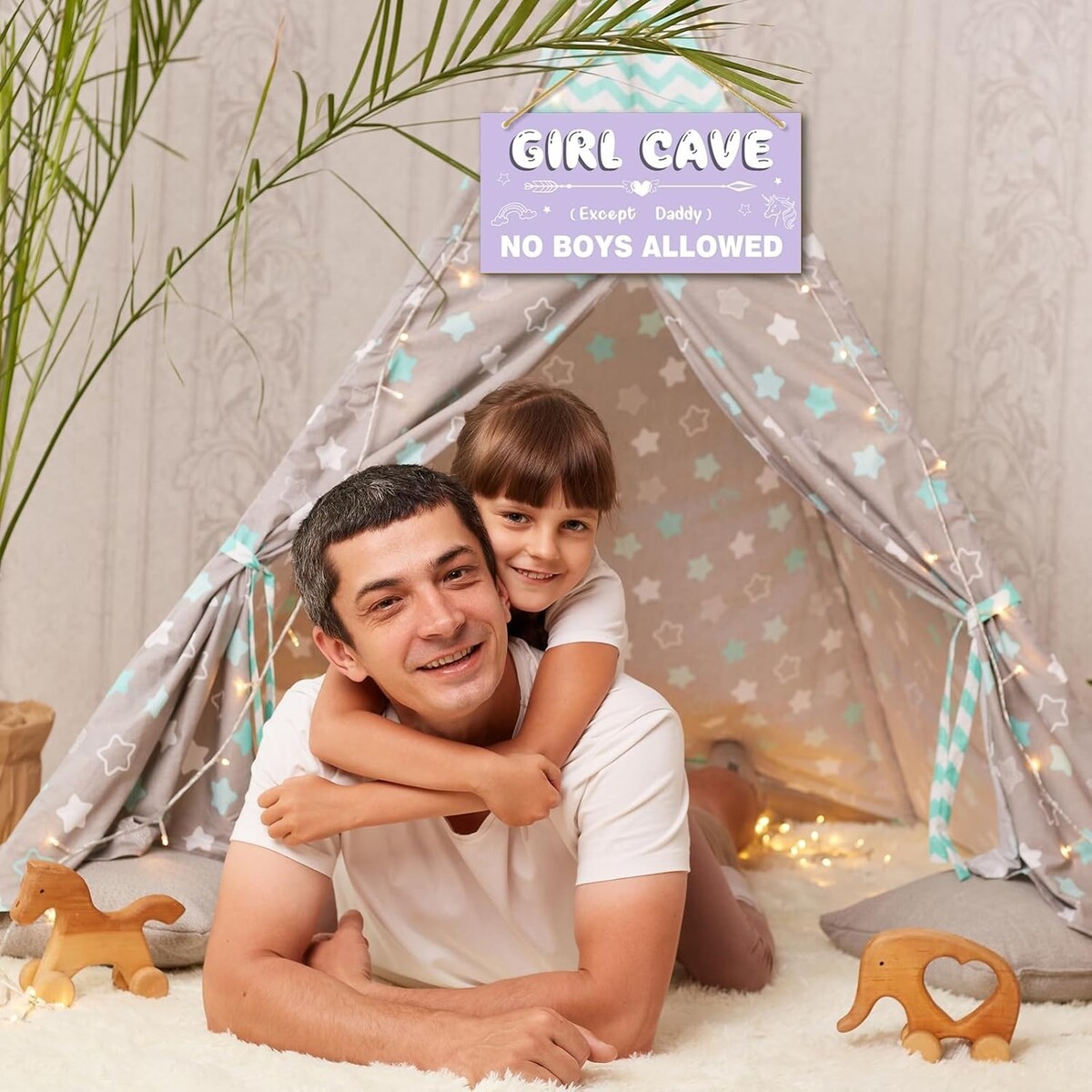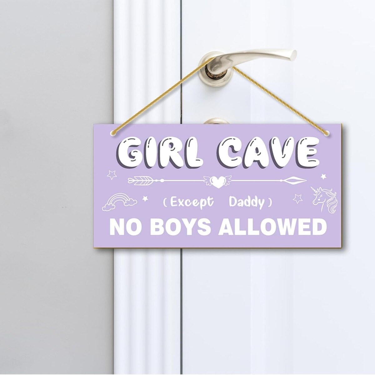 Girls Bedroom Wall Decoration Kids Nursery Room Wooden Cave Sign 12" x 6" Purple