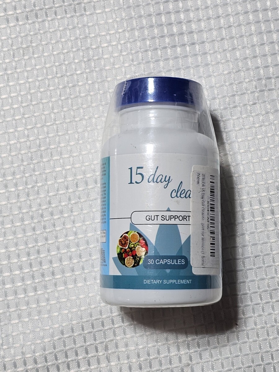 Product Description: This listing is for a lot of two (2) bottles of 15 Day Clean ? Gut Support dietary supplement capsules. Each bottle contains 30 capsules and is brand new, factory sealed, but does not include original retail packaging. Bottles show intact shrink wrap and labels as pictured. Designed as a short-term gut support supplement, this product is labeled for occasional use. Please review all photos carefully for ingredients, suggested use, and warnings. Sold exactly as shown. No medical claims are made, and this item is not intended to diagnose, treat, cure, or prevent any disease. Buyer is responsible for determining suitability before use.