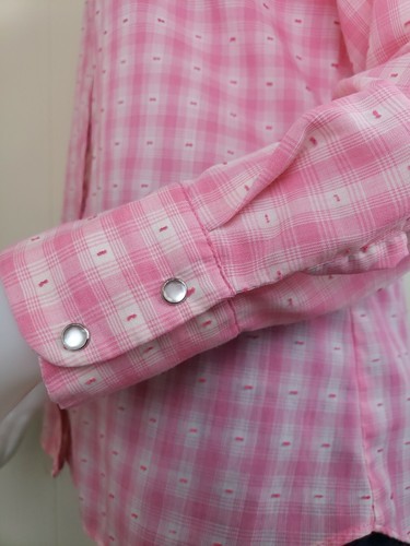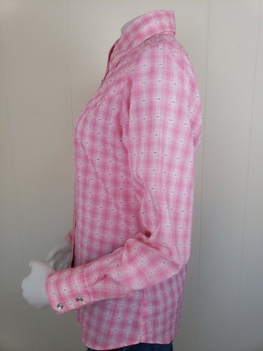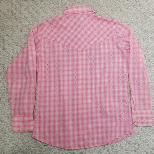 Levis For Gals Flocked Pink Check Top Womens L Vintage Pearl Snap Western Rodeo