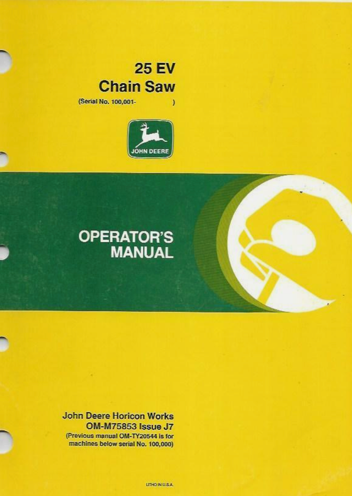 John Deere 25 EV Chain Saw Operator's Manual OM-M75853