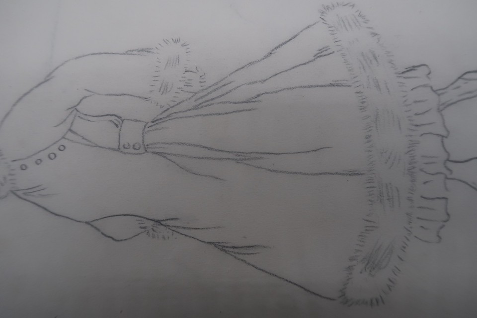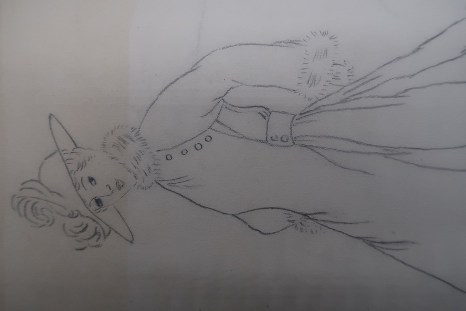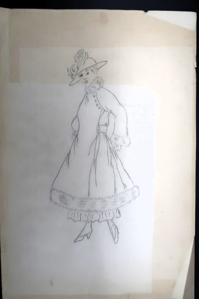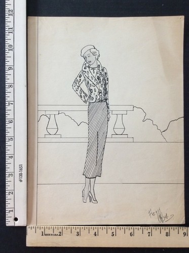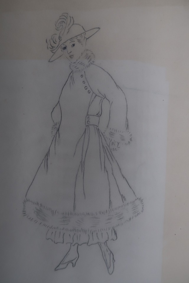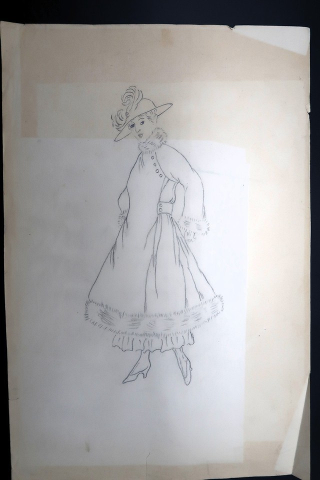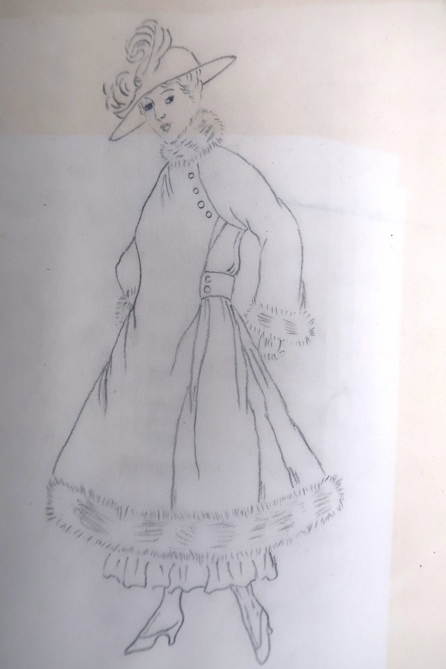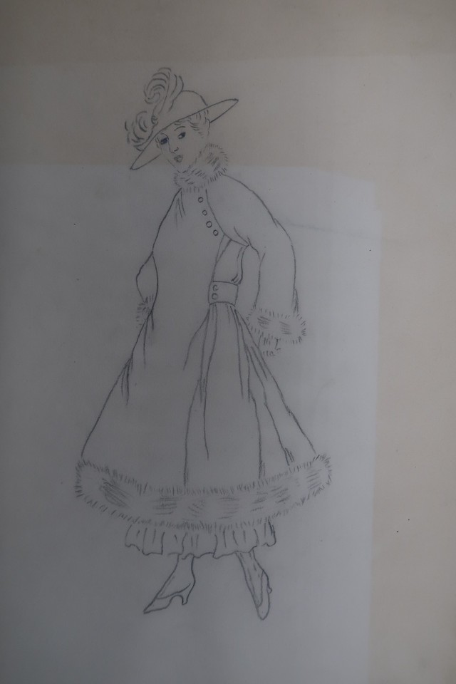 Antique Fashion Design Illustration Art unsigned Annie Horton c.1920 Pencil