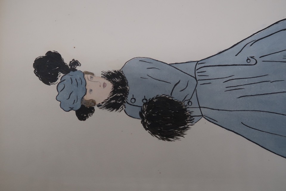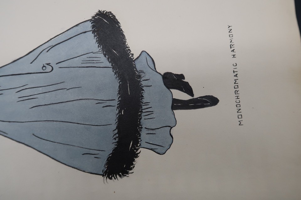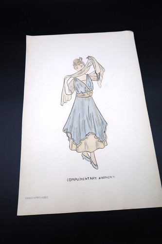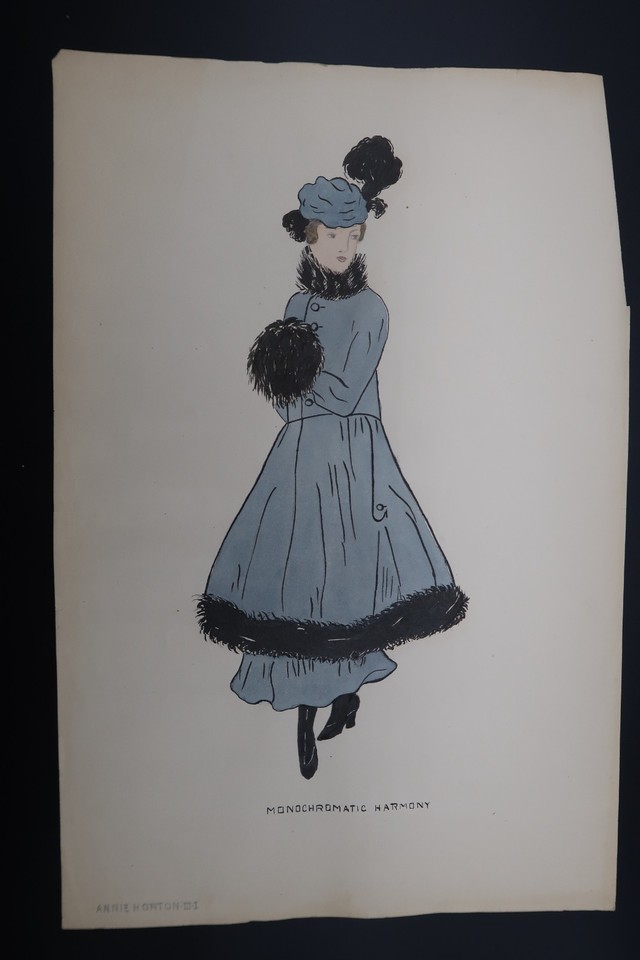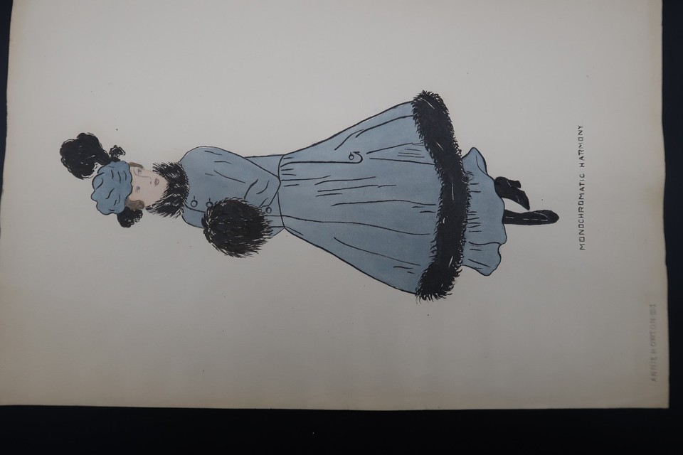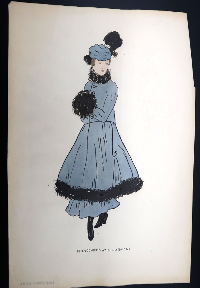 Antique Fashion Design Hand Colored Illustration Art Signed Annie Horton