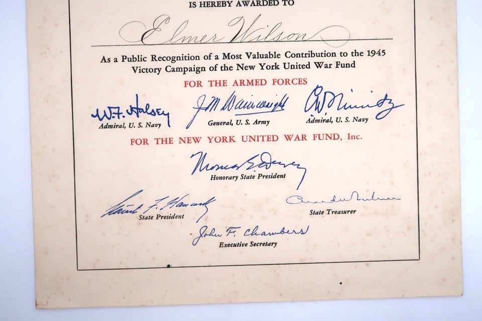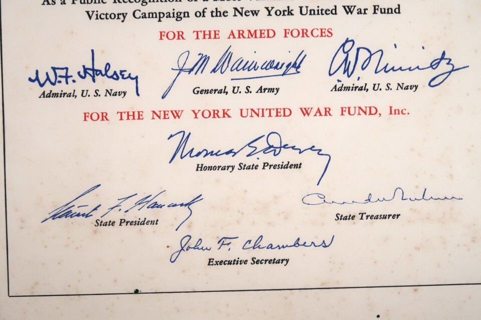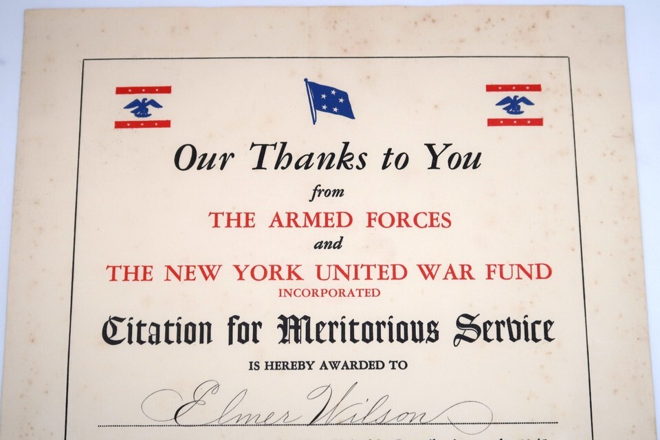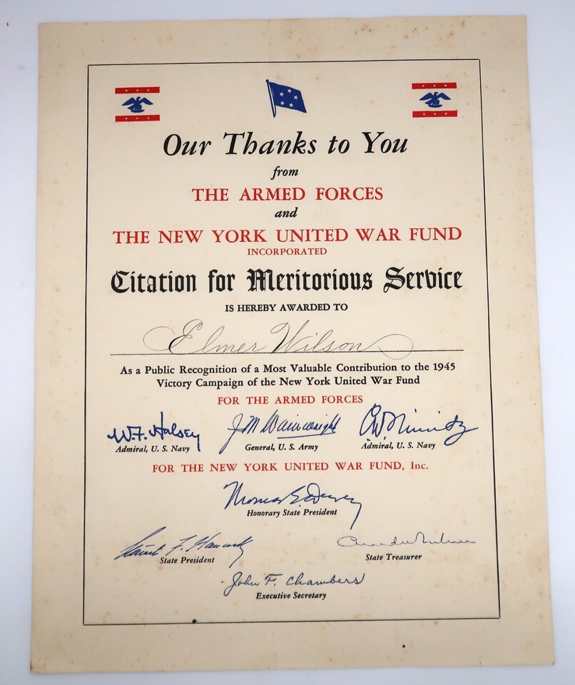 Vtg WW2 NY United War Fund 1945 Victory Campaign Meritorius Service Award Rare