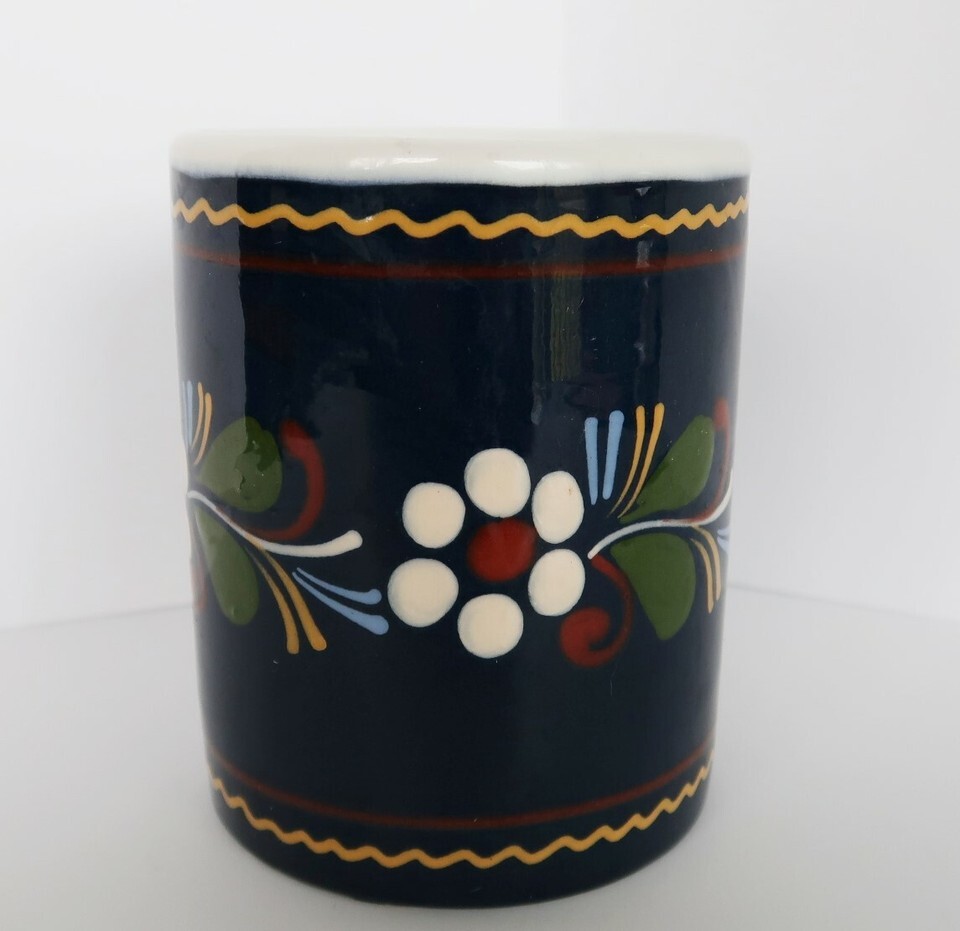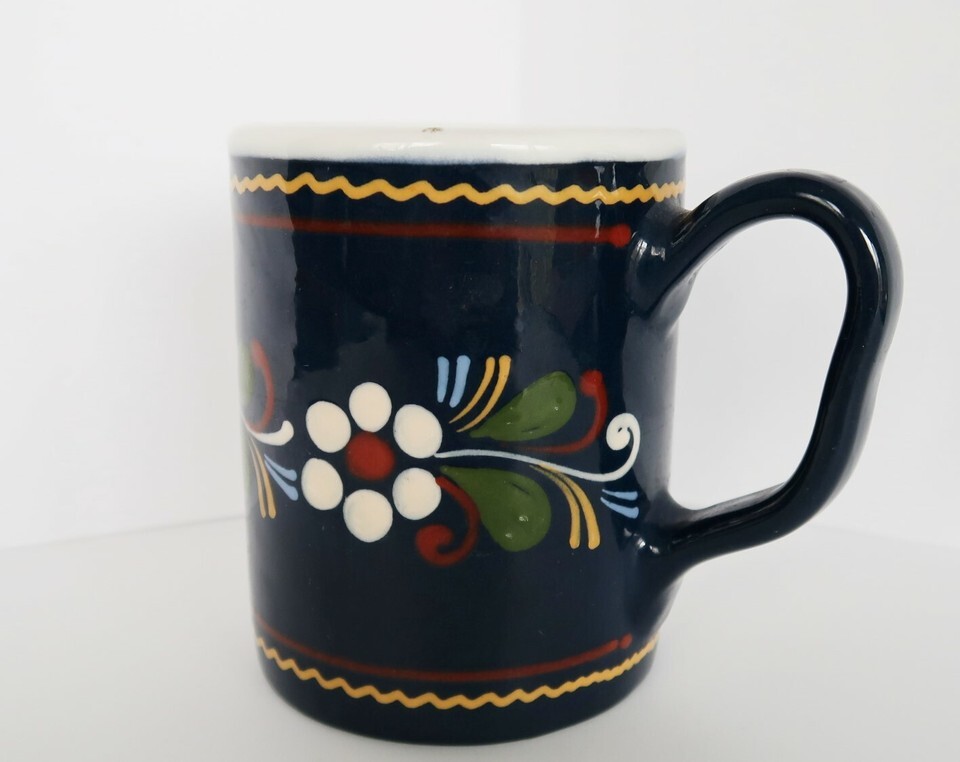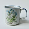 Pair of vintage stoneware coffee mugs cups blue with flowers daisies theme