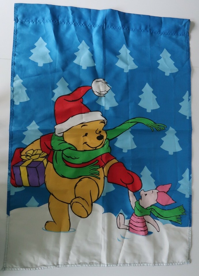 Cute Winnie the Pooh & Piglet winter Christmas snow scene garden flag