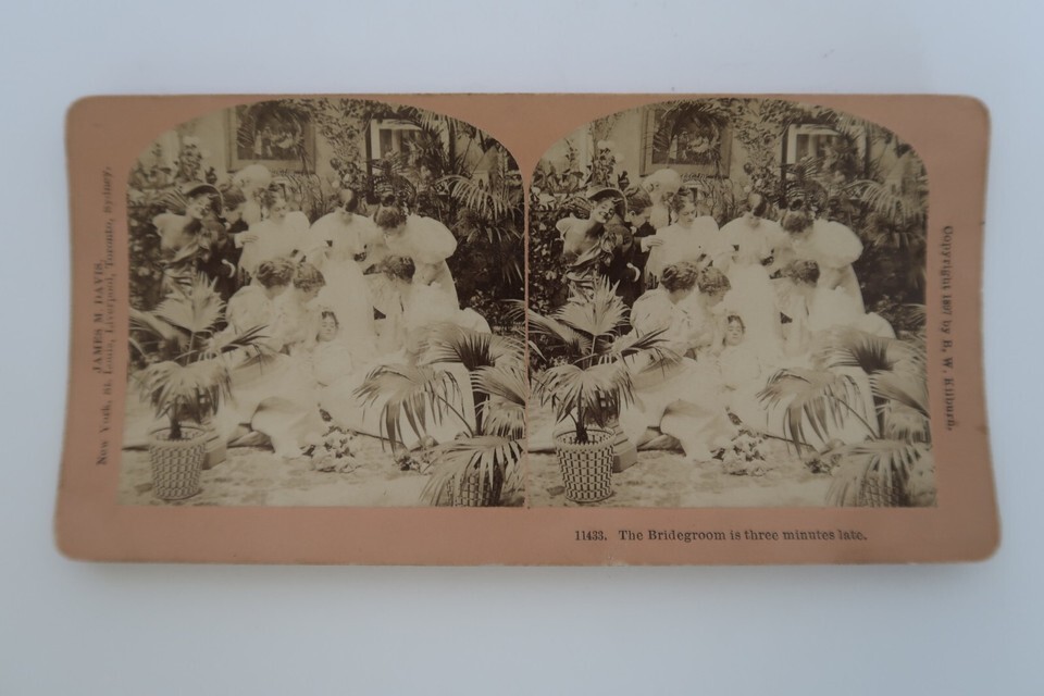 Stereoview Photo "The Bridegroom is three minutes late" B.W. Kilburn 1897
